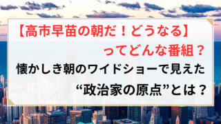 政治家 【高市早苗の朝だ!どうなる】ってどんな番組?|懐かしき朝のワイドショーで見えた“政治家の原点”とは? 高市早苗さんが出演していた「朝だ!どうなる」とはどんな番組だったのか?放送当時の発言や時代背景を振り返り、今の政治姿勢につながる“原点”をわかりやすく紹介します。 2025.10.12 政治家
