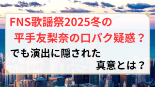 エンタメ FNS歌謡祭2025冬の平手友梨奈の口パク疑惑?でも演出に隠された真意とは? FNS歌謡祭2025で話題となった平手友梨奈さんの口パク疑惑。その真相やネットの反応、演出の意図までやさしく解説しています。 2025.12.05 エンタメ